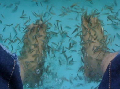 рыбок Garra Rufa, которые делают одновременно и микромассаж, и педикюр.
