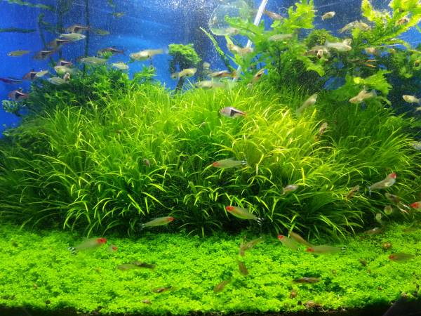 Заросли хемиантуса "кубы", пора стричь, аквариум 150 л. на грунте ADA, ему более 1 года