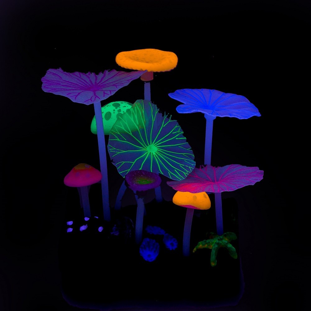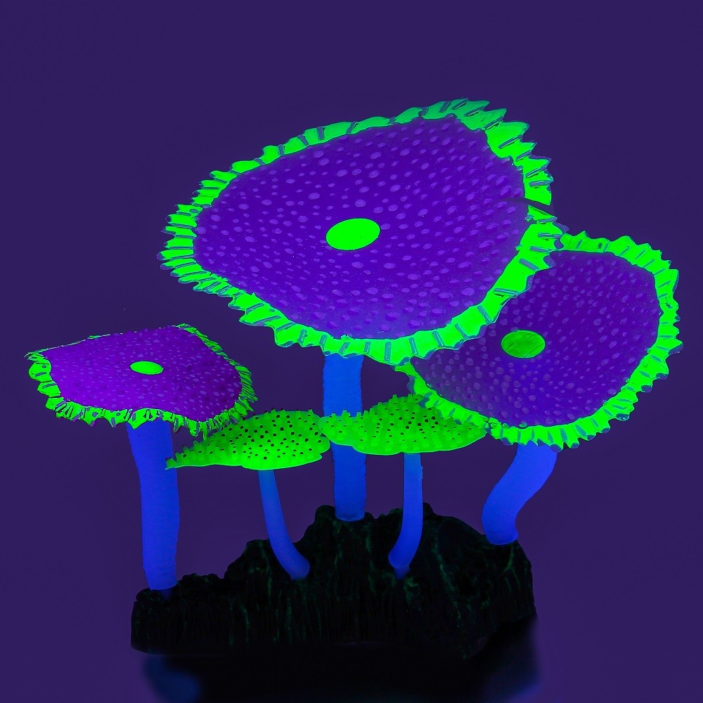 Флуоресцентная аквариумная декорация Грибы (тип Н), 11х8х12см |
