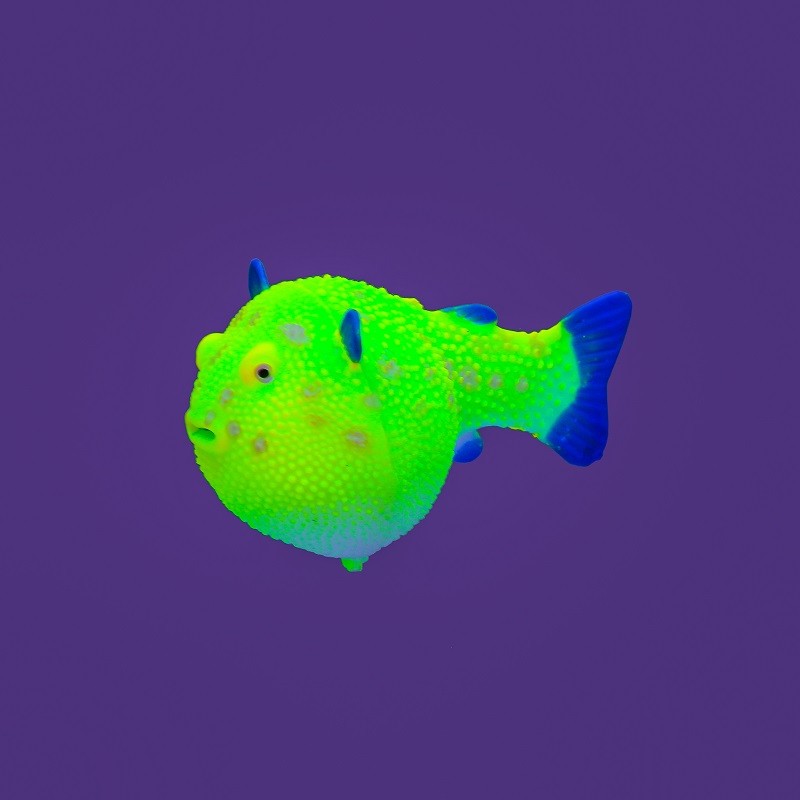 Флуоресцентная аквариумная декорация Рыба шар на леске желтая, 8х5х5,5см |