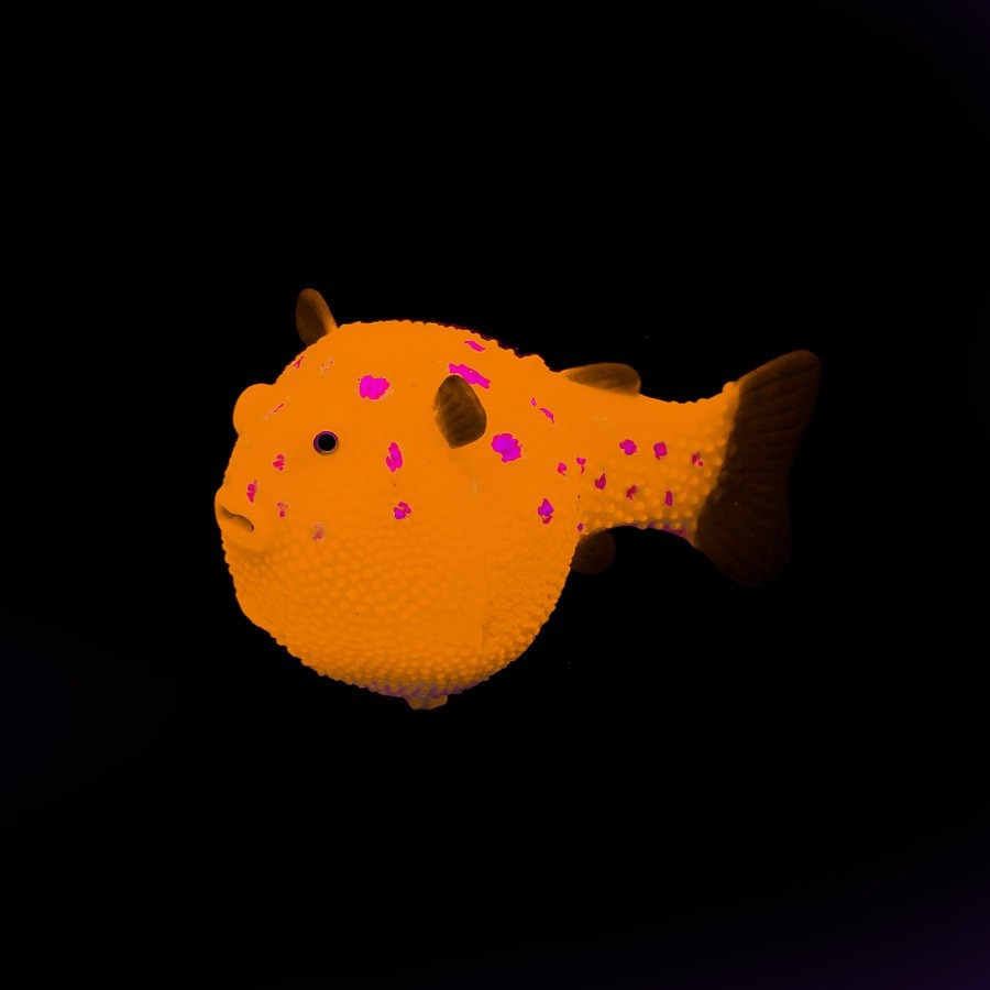 Флуоресцентная аквариумная декорация Рыба шар на леске оранжевая, 8х5х5,5см |