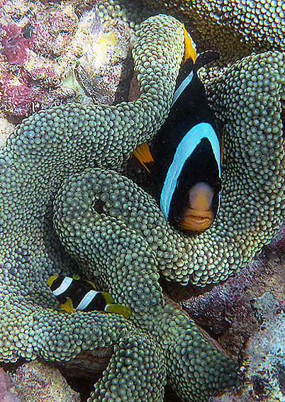 | Многие любители морского аквариума начинают своё увлечение с содержания анемоновых рыб - амфиприонов )Amphiprion spp.), которых в настоящее время насчитывается по крайней мере 28 видов. Название отражает природные особенности жизни амфиприонов в симбиозе с актиниями, которые защищают их от врагов и характеризуется уникальным поведением, о котором много написано, как в аквариумной, так и научно-популярной литературе. Хочу отметить лишь главные особенности анемоновых рыб, которые следует принимать во внимание при содержании в аквариумах. Рыбы эти относятся к борльшому семейству помаценрид (Pomacentridae) и считаются довольно неприхотливыми, чего нельзя сказать об актиниях-анемонах, которые значительно нежнее и нуждаются в совершенной системе фльтрации и регенерации воды. Кроме того следует иметь ввиду, что не каждый вид актиний безопасен для амфиприонов, поэтому при их приобретении надо проконсультироваться со специалистами. Прежде всего хочу отметить, что для анемоновых рыб отмечен интересный феномен изменения секса, причём для получения пары рыб достаточно иметь 2 особи любого пола. При хороших условиях содержания они в течение короткого времни образуют плодовитую пару, где самка крупнее самца. Это хорошо видно на фотографиях Владимира Одинченко, сделанных им в природных условиях в Индонезии. Размножение амфиприонов в аквариуме берёт своё начало в 1930 году. Несмотря на сравнительно крпуные размеры личинок выкармливание молоди дело не простое и в нашей стране впервые удалось Д. Степанову более 25 лет назад. В первые дни малькам дают специально выращенных морских коловраток, а затем свеже-выклюнувщихся науплий артемии. Примерно в это же время разведение 8 видов анемоновых рыб поставили на поток в США. Бок о бок с амфиприонами живут другие представители помацентровых, но они явно и небезосновательно опасаются соседства с актиниями. Размножение других родов, таких, как, например дасциллусы (Dascillus spp.) не освоено в части выкармливания молоди. В настоящее врем разводят уже более 60 видов морских рыб, тем не менее общее количество разведённых в коммерческих целях морских рыб составляет всего лишь около одного процента от продаваемых на всех аквариумных рынках мира. Источник: http://www.aquariumist.ru/publ/anemonovye_rybki_i_ikh_osobennosti/22-1-0-430 | |