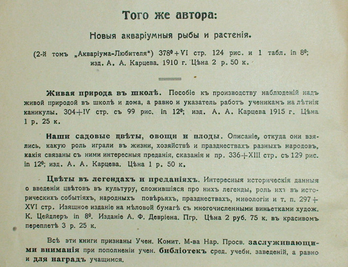 | Сегодня 13 апреля 1851 родился Николай Фёдорович Золотницкий - выдающийся российский аквариумист. Николай Федорович - ровесник самого понятия аквариума и аквариумистики, как мирового явления. В этом году исполнилось 130 лет с момента выхода в свет первого издания его замечательной книги «Аквариум любителя». В дореволюционный период эта книга переиздавалсь 4 раза. Помимо этого "Аквариум любителя" был переведен на немецкий язык, а последнее издание вышло в 1916 году. Библиография Золотницкого невелика и представлена в виде фрагментов из его книги ниже. К сожалению время берёт своё и это видно по пожелтевшим страницам. Чтобы хоть как-то увековечить имя этого великого любителя аквариума, Московский Городской клуб аквариумистов и террариумистов (МГКАТ) был назван в его честь. Увы -это не было одобрено властями, а название так и осталось неофициальным. Однако, несмотря ни на что были выпущены памятные медали клуба на обратной стороне которых были выгравированы слова из книги "Аквариум любителя". Когда-то давно на одном из собраний МГКАТ мы хотели собрать средства и поставить Н.Ф. Золотницкому достойный памятник. Я лично выразил желание встать на Птичьем рынке, чтобы собирать деньги на надгробье и был абсолютно уверен, что собрал-бы. Любители аквариума мне всецело доверяли - они знали, что ни одна копейка из собранного не будет украдена. Однако по стечению обстоятельств ничему этому не суждено было сбыться… Тем не менее, всё-же удалось хоть что- то сделать. - Организуя в 1989 году первую (и последнюю ) в СССР международную выставку Inter-Aqua-89, я посвятил её этому славному имени. Кроме того, один из активистов МГКАТ - Георгий Чорбадзе, написал портрет Золотницкого маслом и подарил его клубу. Вы видите этот портрет в самом начале. В прошлом году, отмечая годовщину со дня рождения Николая Федоровича, я смонтировал небольшой фильм. Я надеялся, что в течение года мне кто-нибудь поможет сделать анимацию, чтобы Н.Ф. Золотницкий сделал напутствие российским аквариумистам, сказал что-нибудь... Но на мои пожелания никто не откликнулся, а делать всё одному мне просто не хватает сил. | |