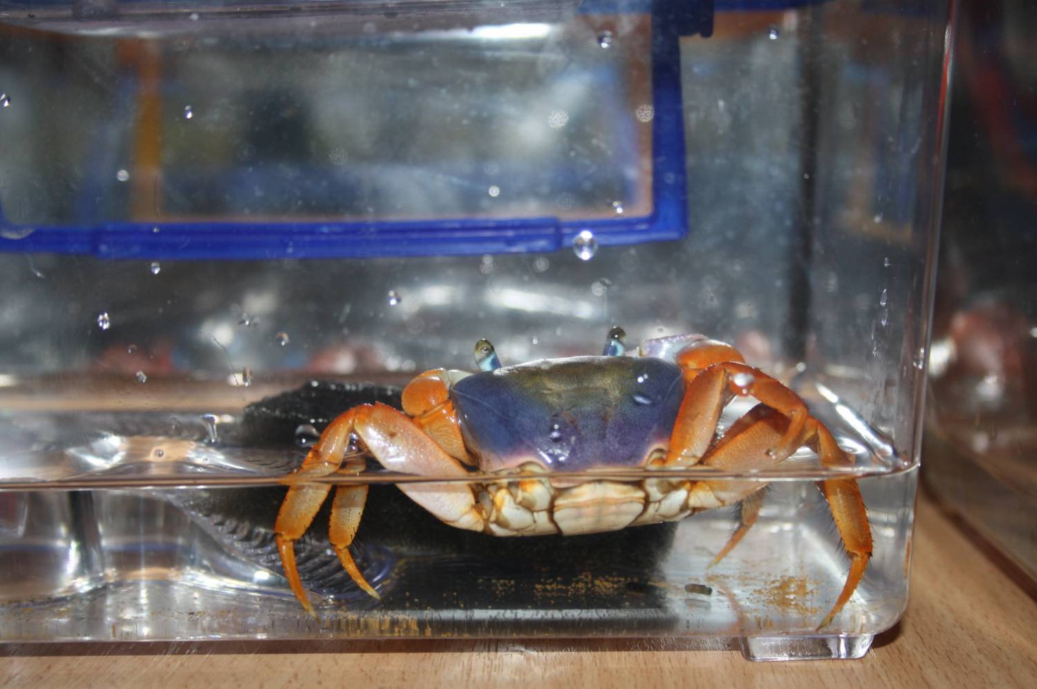 Оптимальная температура воды для содержания крабов 25-26 градусов, температура воздуха 26-28 градусов цельсия.