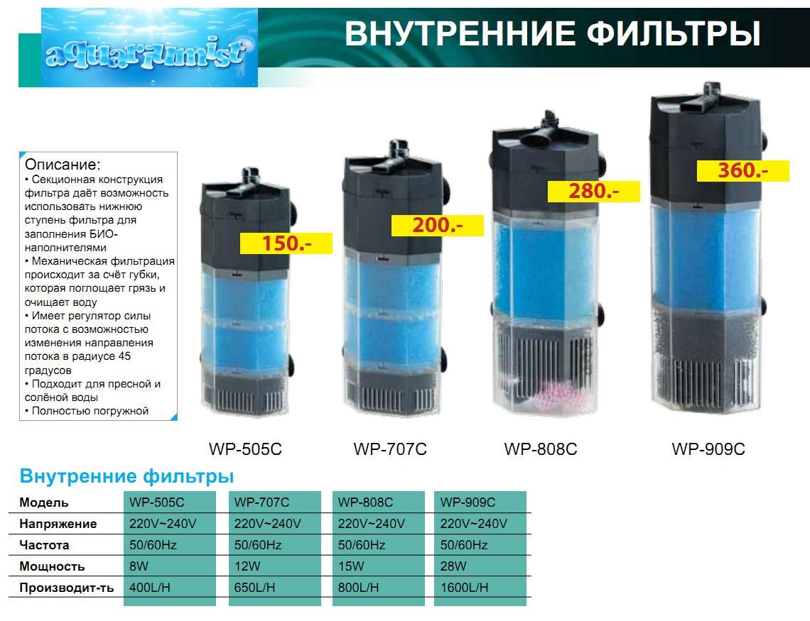 Фильтр внутренний с дождевальной флейтой, керам вал 17W (1000л/ч,акв. до 360л) угольный картридж (шт.)79х90х230 мм,220В, 50Гц,вес 0,8 кг |
