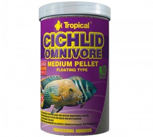 Cichlid Omnivore Medium Pellet 1000мл плавающие шарики для взрослых рыб- корм для всеядных цихлид