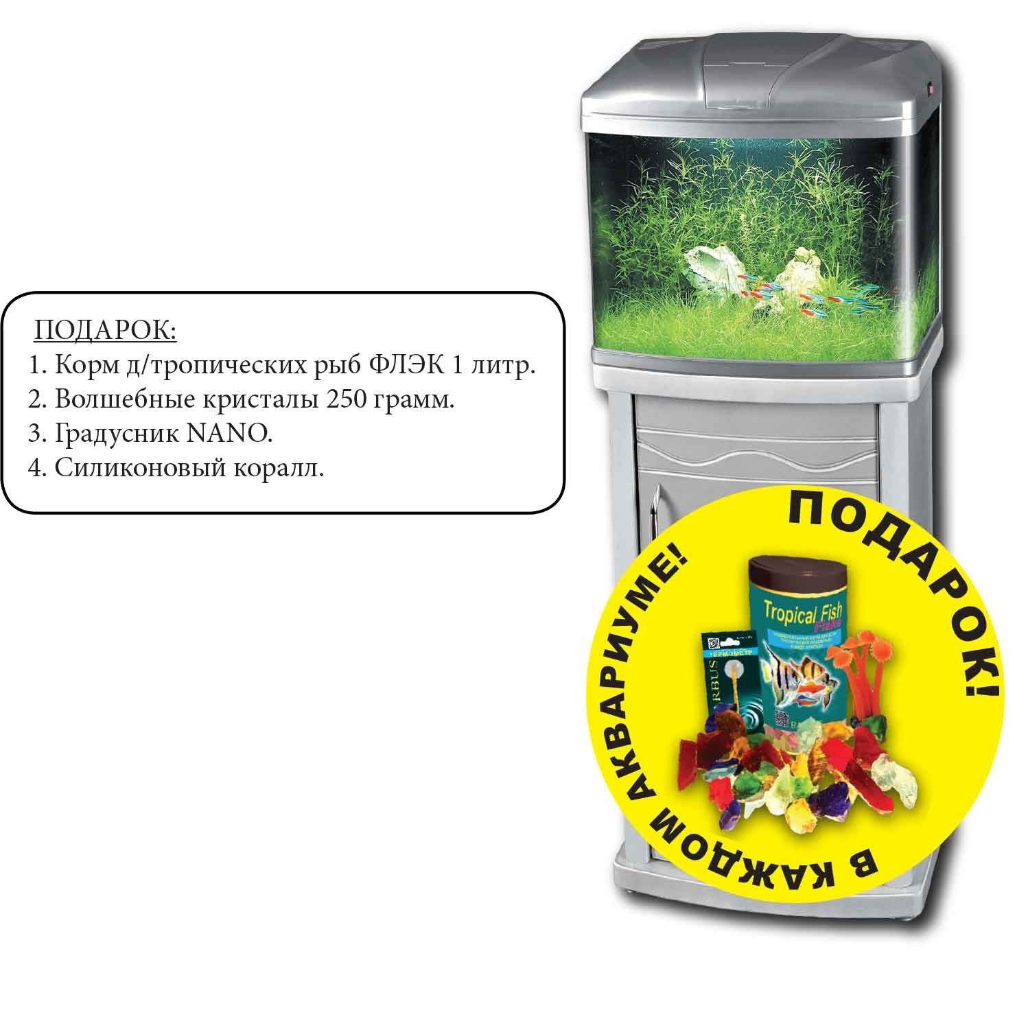 Комплектация действительна с 2015 до 2017 года ( в подарок корм для рыб, грунт, силиконовый коралл, градусник )