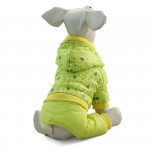 Желтый комбинезон с капюшоном утепленный для собак. Внешняя ткань выполнена из полиэстера, подкладка - из флиса желтого цвета. Удобные манжеты на резинках, застежки- в виде кнопок.