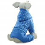 Синий комбинезон с капюшоном утепленный для собак. Внешняя ткань выполнена из полиэстера, подкладка - из флиса синего цвета. Удобные манжеты на резинках, застежки- в виде кнопок.