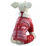 Зимний комбинезон для собак, теплый, подкладка флисовая, наполнитель синтепон. Цвет красный. Отделан белым воротником из искусственного меха. Застегивается на молнию. Костюм очень легко одевать, за счет молнии на спинке.