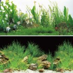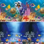 Двусторонний аквариумный метражный фон на ламинированной бумаге с красочными фотографиями подводного мира.