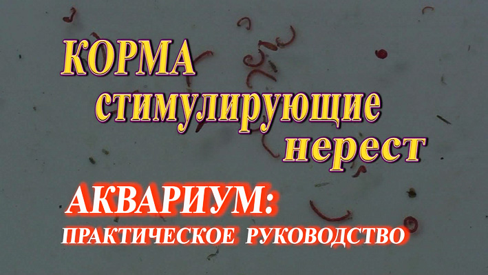 Иногда, чтобы добиться размножения и получить полноценное потомство от рыб в аквариуме приходится применять специальные живые и искусственные корма. Опыт, проверенный десятилетиями, показал, что крупный рыбацкий мотыль стимулирует нерест рыб, благодаря особенностям биохимического состава, который, как установлено в лабораторных условиях, значительно отличается от состава мелкого и среднего мотыля обычно используемых для кормления. Показаны и другие виды живых кормов - черви, слизни и насекомые. Автором были впервые проведены успешные эксперименты по стимуляции нереста рыб с помощью искусственных кормов с наполнителем в виде грибов.